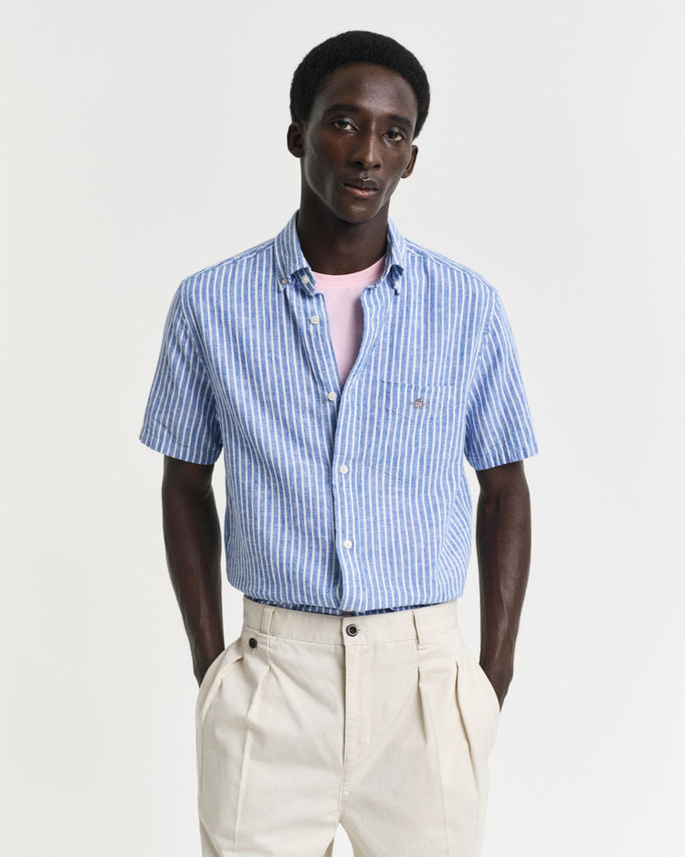reg cotton linen stripe ss shirt