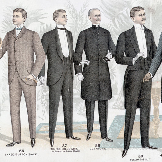 The high collar seen in portraits dating from this era is, in fact, a holdover from Victorian times. Though it is out of fashion today, a higher, stiffer collar does still convey formality.