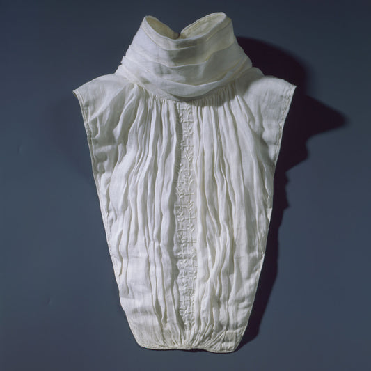 The “half shirt” or “sham” was a popular men’s garment at this time. A decorative layer, it only covered the top portion of the chest and was worn over a shirt that was either deemed too plain for the occasion, or needed washing.