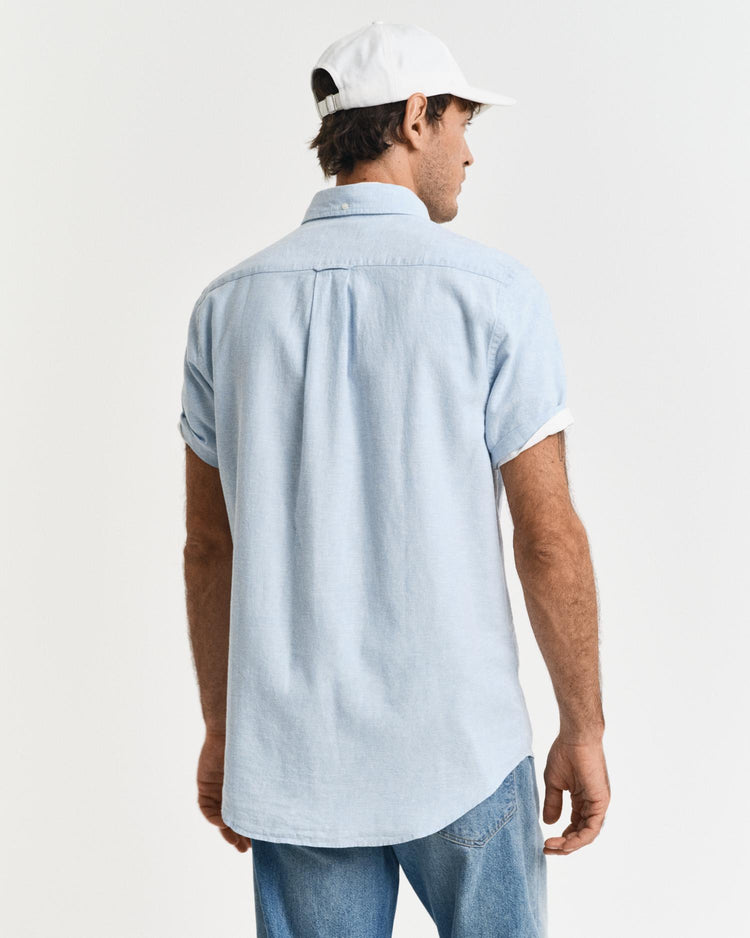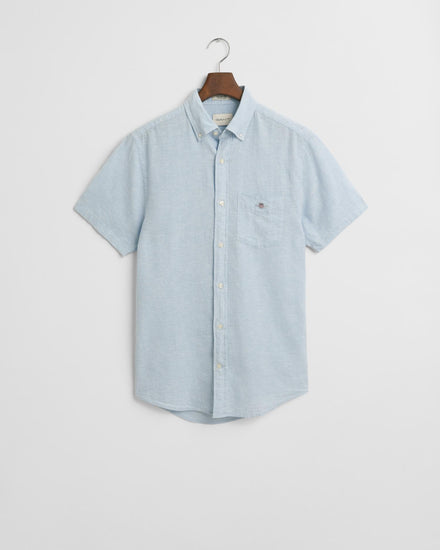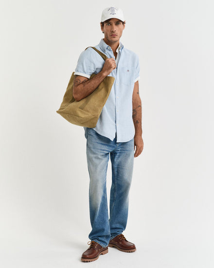 Made of a crisp linen-cotton blend, this shirt is light, breathable and airy. Cut for a regular fit, it features a button-down collar, curved hem, and a chest pocket with shield embroidery. This shirt is finished with a box pleat and our signature locker loop at the back.