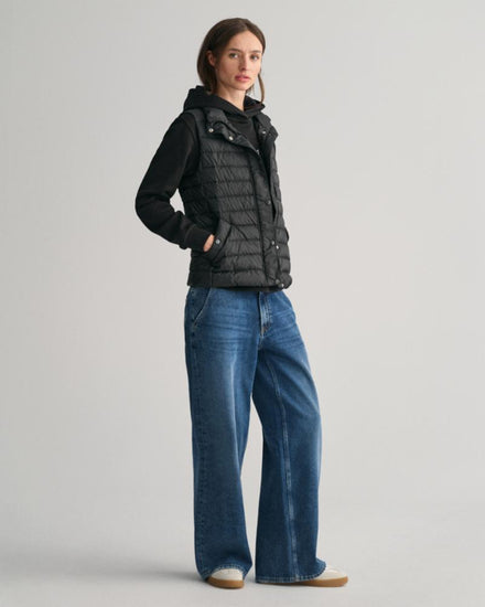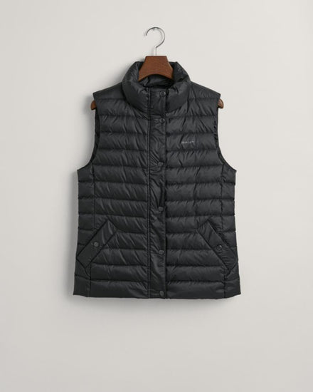 An easy, year-round layering piece with 90% down and 10% feathers, the Light Down Vest is made from super light and certified recycled polyester with a water-repellent finish. The piece has a regular fit with a straight hem and a slightly shorter length that makes it ideal to be worn alone over shirts or under heavier coats on colder days. A stand collar, lacquered snaps, angled welt pockets, a two-way zipper, and a printed logo at the chest complete the piece.