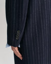 Tailored from an Italian wool blend with a certified viscose lining, this coat is patterned with classic pinstripes. Cut for a relaxed fit, it has a classic, tailored silhouette that hits at the calf. Other design details include notch lapels, a back vent, jetted flap side pockets and a chest welt pocket. This garment is intended for a relaxed fit. For a closer fit, we recommend sizing down.